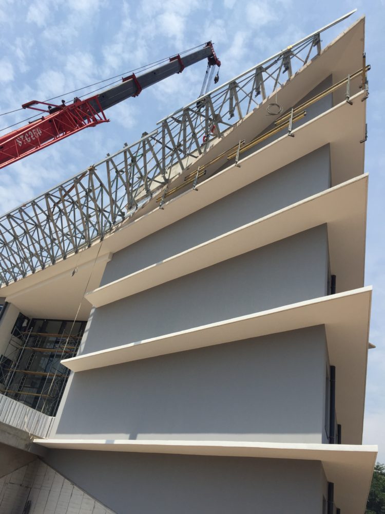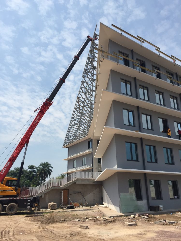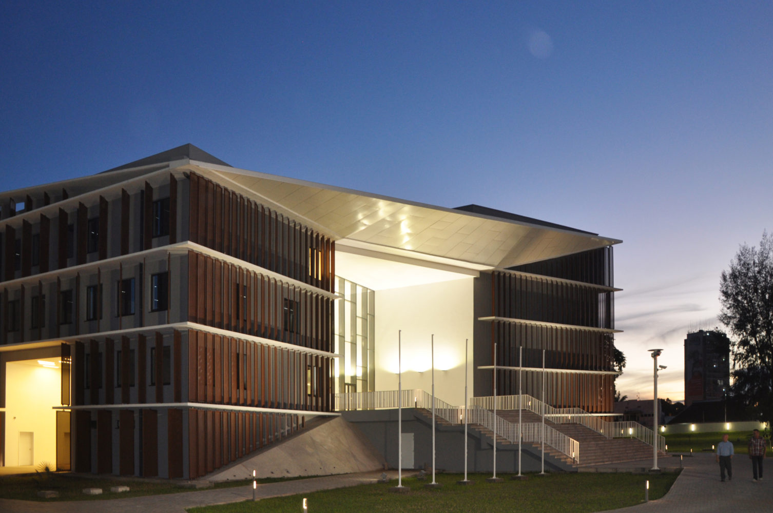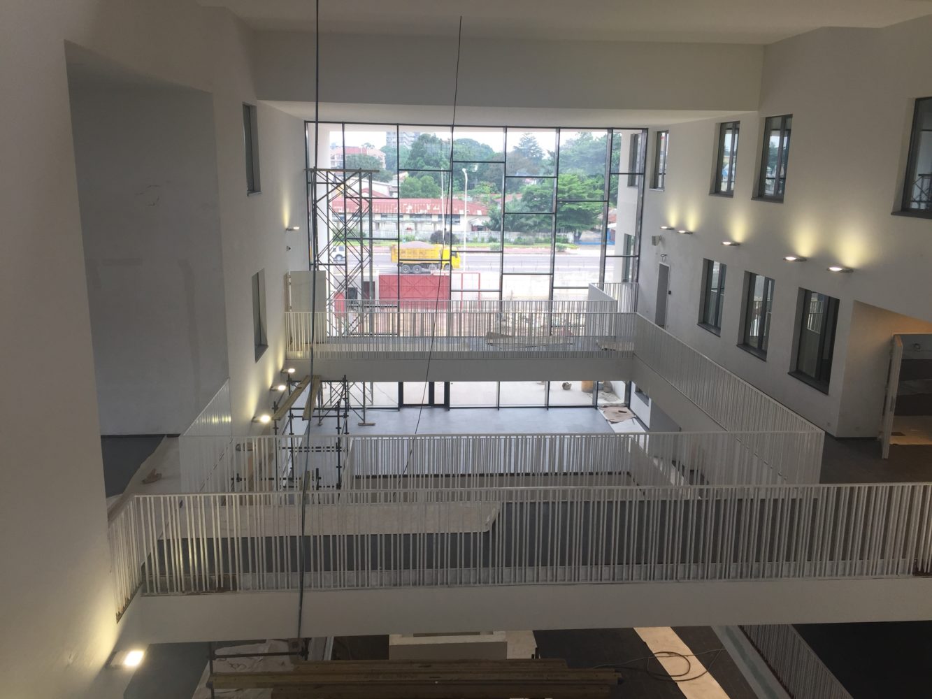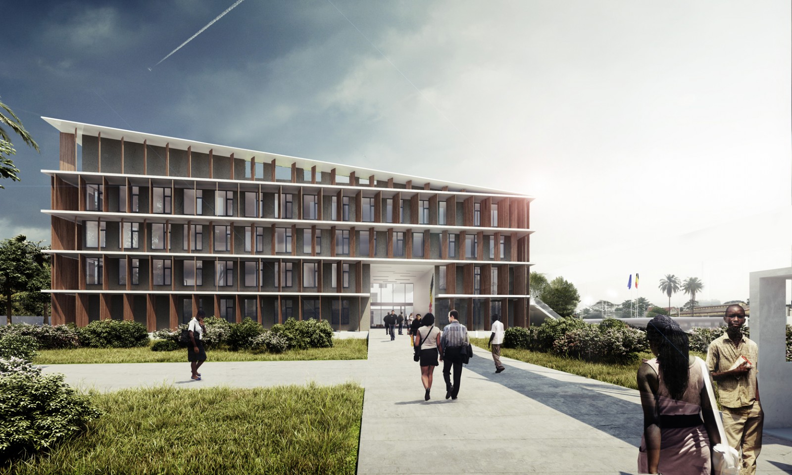 The building enveloped played a key role into achieving passive house standard. Indeed, the challenging climate of Kinshasa (i.e. high temperatures and humidity levels) called for parametric design to generate every sun screen variations according to the overall solar radiation on the city. This gives the project a truly unique signature.