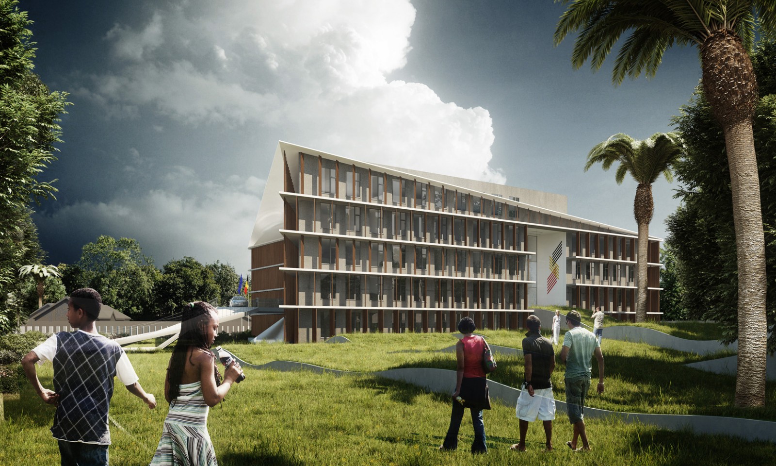 Notwithstanding the need for sheltered, secured spaces, the expression of openness, dialogue and diplomacy was also brought to prominence. That is, large building openings help to clearly distinguish the different types of entrances and guide the user to the various embassy departments. Honoring its commitment to the future, this embassy is anti-seismic and designed so as to remain functional and capable to withstand flooding.