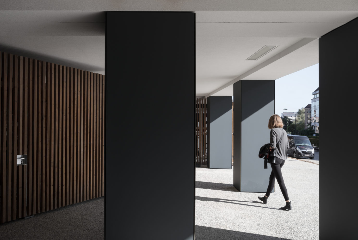 Located in the heart of an urban fabric, the conversion of this young heritage from the eighties into housing and retail space shows that it is quite possible to combine performance with elegance.
